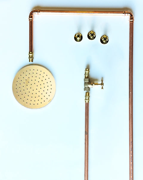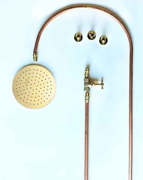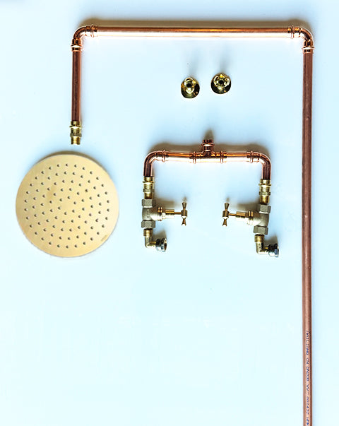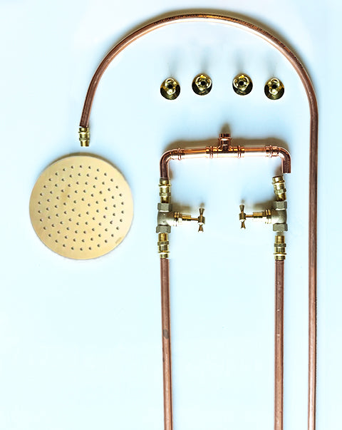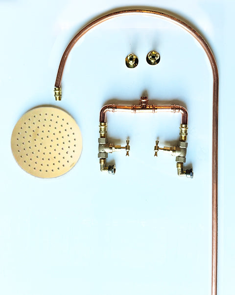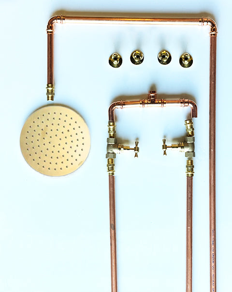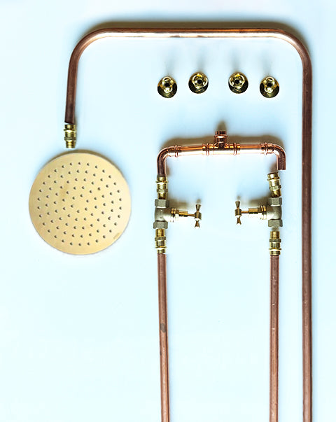 Each kit includes brass shower heads, matching clips, copper pipes, and WELS-rated fittings ready for your plumber.